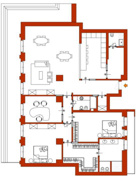 in stabile signorile affitasi appartamento ultimo piano composto di: salone cucina sala pranzo lavanderia camera letto con bagno padronale nella torre.